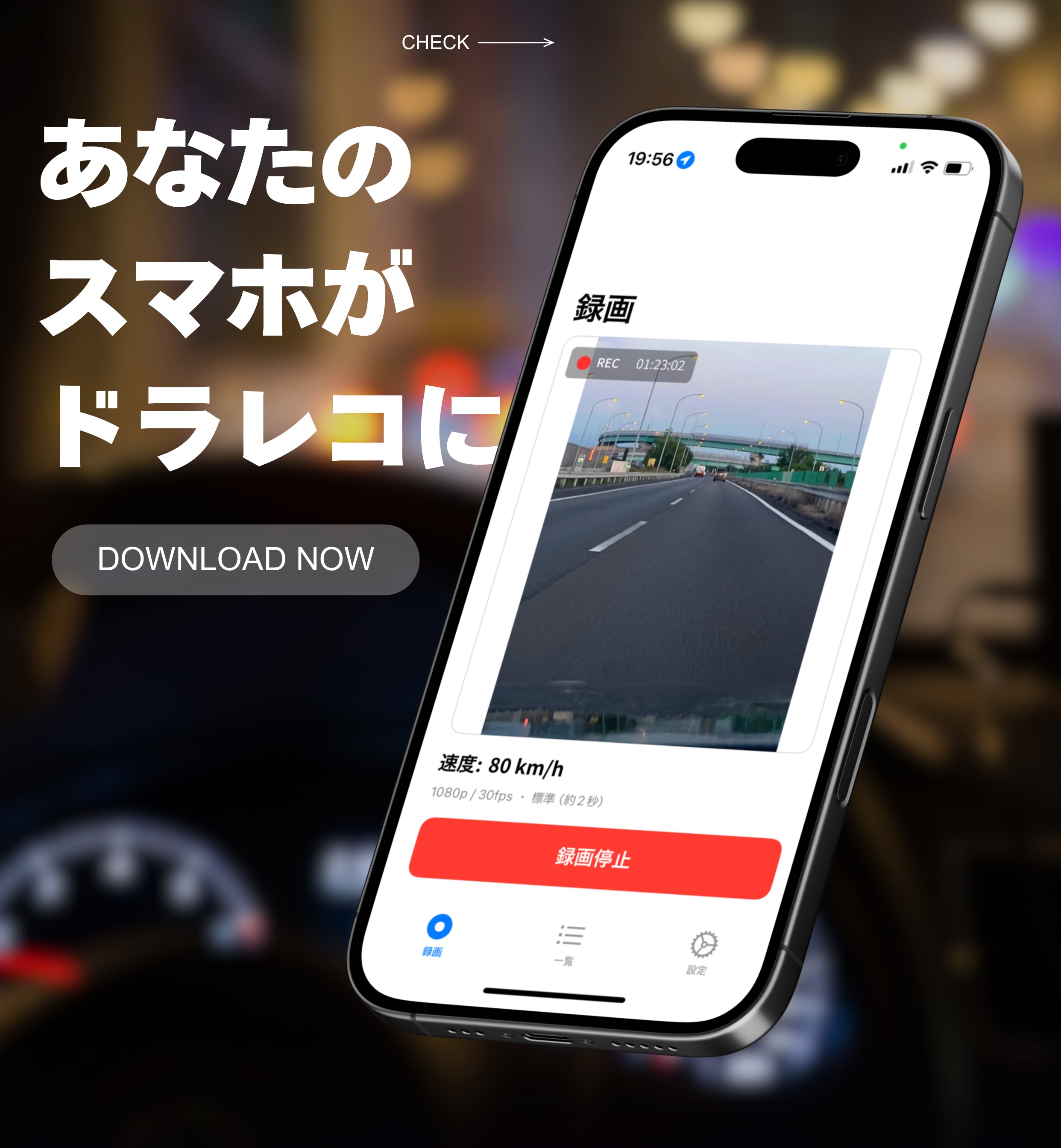 iPhone を車内に固定して、映像 + 位置情報 + 速度 を同時に記録できるドライブレコーダーアプリ